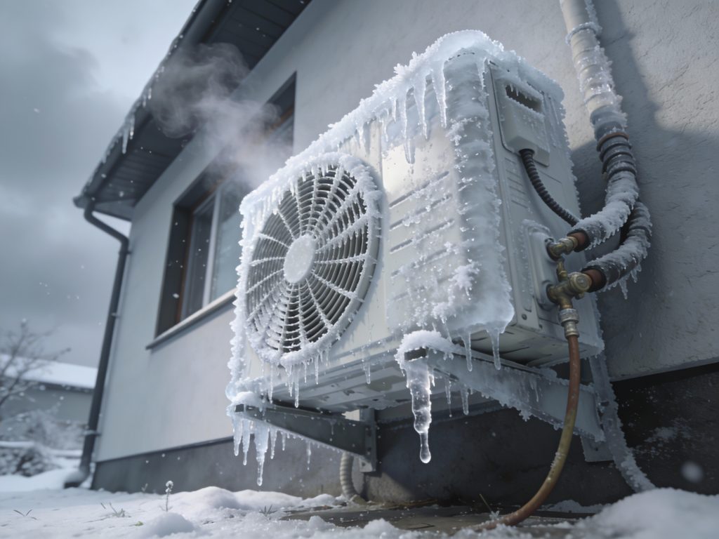Lorsque la température extérieure descend en dessous de 5°C et que l’air est humide, le givre peut se former naturellement sur l’échangeur de chaleur. Les modèles réversibles ou pompes à chaleur sont particulièrement sensibles au gel en hiver, car ils fonctionnent en mode chauffage et extraient la chaleur de l’air extérieur.